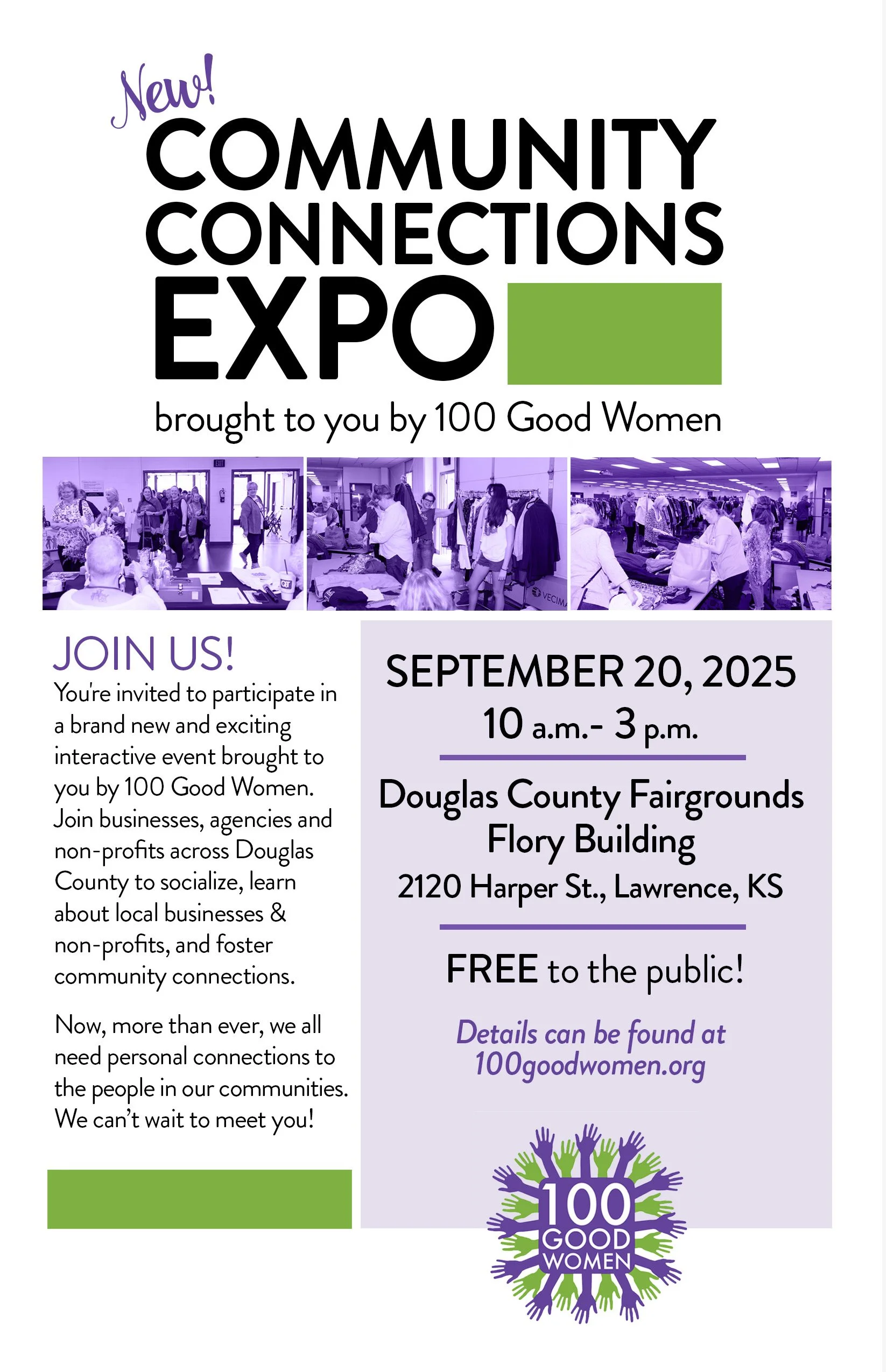 Businesses, agencies and non-profits are invited to reserve a spot at the Expo where they will have an interactive booth allowing greater connectivity with visitors. Booth rental includes 6 foot table and chairs. 100 Good Women will provide social media promotion and would be happy to mention your booth in advertising.